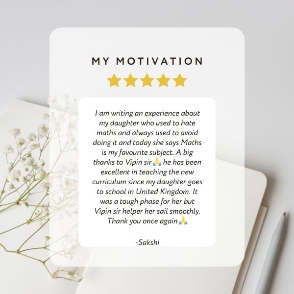 I am writing an experience about my daughter who used to hate maths and always used to avoid doing it and today she says Maths is my favourite subject. A big thanks to Vipin sir 🙏 he has been excellent in teaching the new curriculum since my daughter goes to school in United Kingdom. It was a tough phase for her but Vipin sir helper her sail smoothly. Thank you once again 🙏